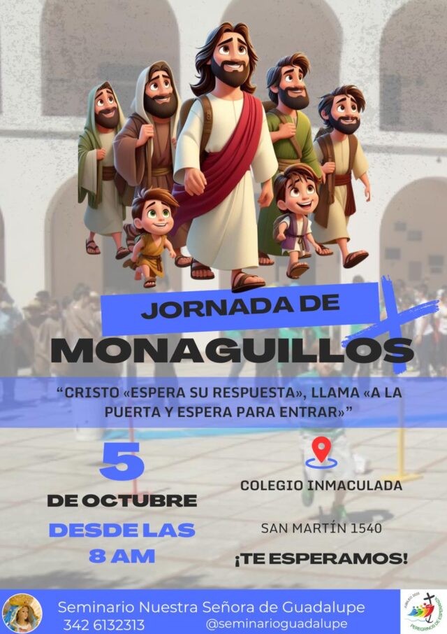 El Seminario Metropolitano Nuestra Señora de Guadalupe invita a participar de la Jornada de Monaguillos 2025, un espacio de encuentro, formación y alegría para los servidores del altar. El encuentro se realizará el domingo 5 de octubre, de 8 a 17 hs, en el Colegio Inmaculada Concepción de los Padres Jesuitas (San Martín 1540, Santa Fe).